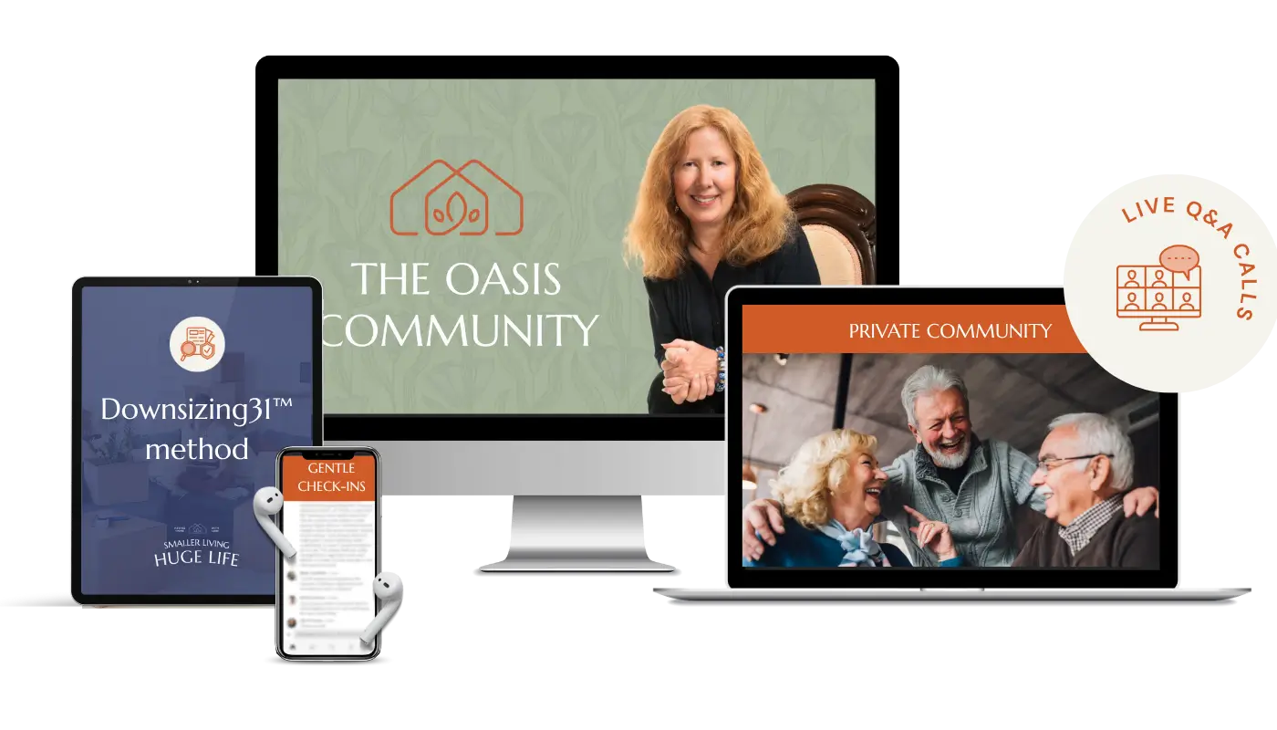 The Oasis Community is for the person who wants to declutter and downsize—but needs more time, encouragement, and grace along the way. It’s for those who prefer small, steady steps instead of an overwhelming all-at-once approach. If you’re ready to finally let go of what no longer serves you, but know you’ll move further with a clear plan and a supportive community by your side—this is your place.